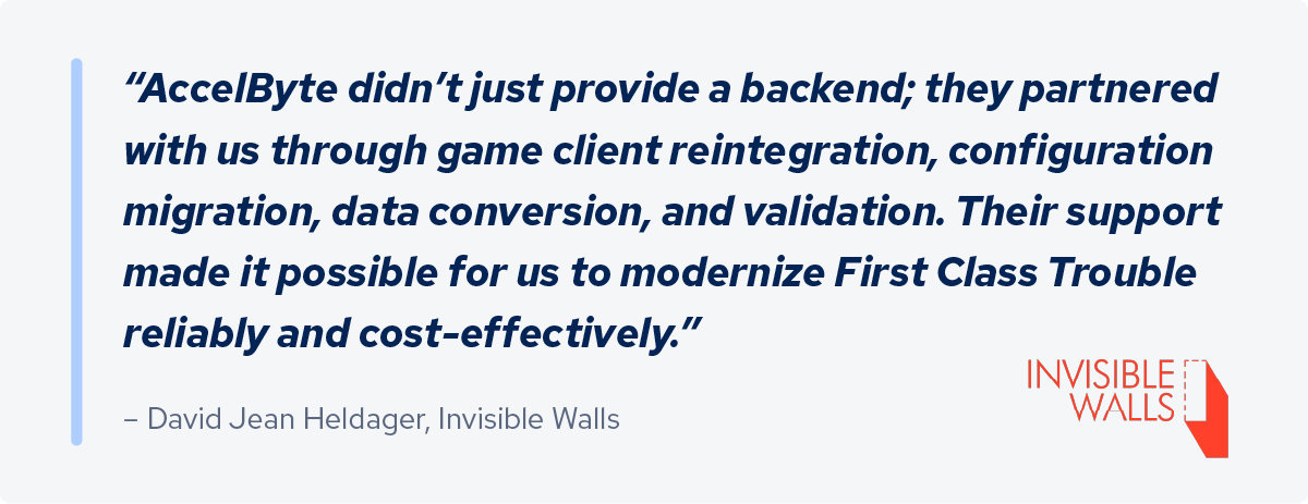 Among the managed options out there, AccelByte Gaming Services (AGS) stands out as it gives the best of both worlds: a complete backend you don’t have to run yourself, and full control when you need it.